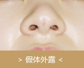 假体外露主要与手术操作有关,如分离腔隙过浅,假体雕塑过厚过锐。当然,术后鼻部受到撞击也有很大的关系。取出假体前须进行常规鼻部检查,注意清洁。